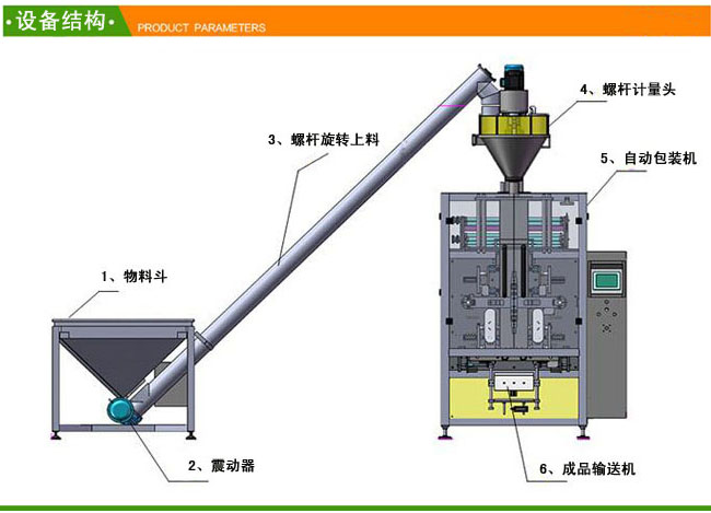 接通電源將(jiāng)溫度設置(zhì)恒溫→設(shè)置包裝機參數(製袋尺寸及包裝(zhuāng)重量(liàng))→人(rén)工上料(liào)到儲料鬥振動下料至螺杆提升機→螺杆(gǎn)計量器→包裝機→打印生產日期→製袋→充填物料→充氣→封合包裝→切斷→包(bāo)裝成品(pǐn)輸出全過程;