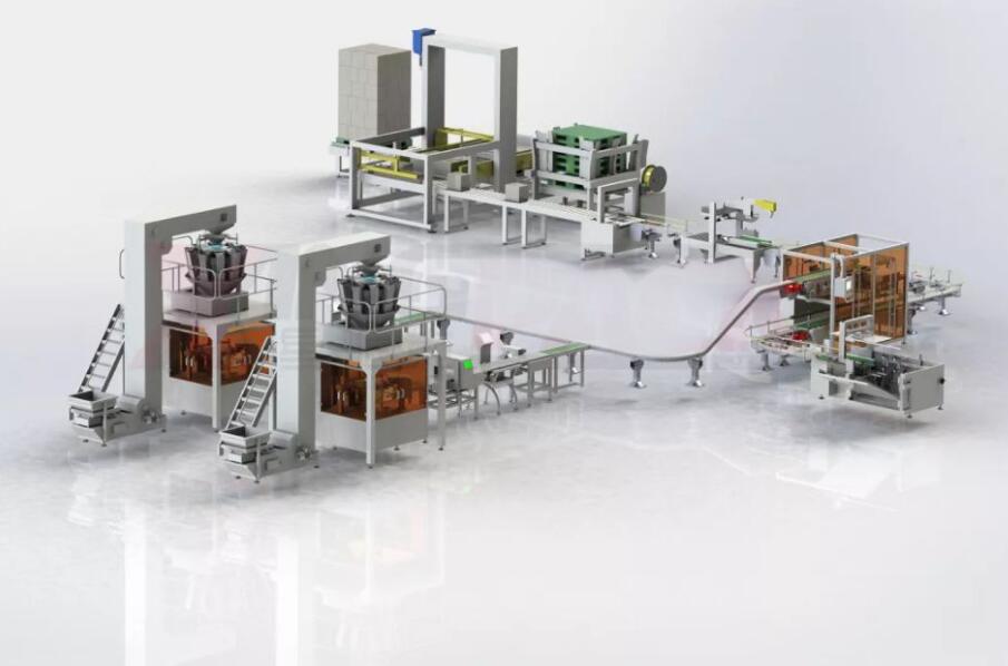 2、袋裝顆粒包裝線全不鏽鋼材料,美觀、防鏽;