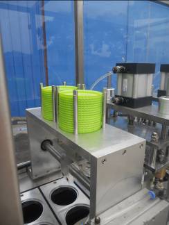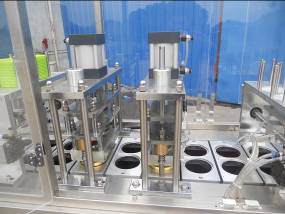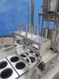 杯盒灌裝封口機從送杯、充填(tián)、液位(wèi)控製、放蓋、兩次封口、推杯、輸送為全自動作業。