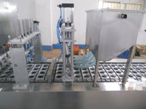 BHP-4杯盒灌裝封口機從送杯、充填、液位控製、放蓋、兩次封口、推杯、輸送為全自動作業。