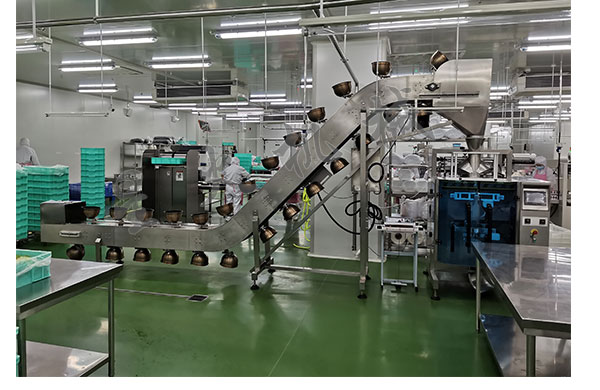 預製菜自動包裝機械設(shè)備的優勢優點如下:采用PLC控製一鍵調節(jiē),8工位同(tóng)時更改到位,整個過程僅需5秒。再將所更換的袋(dài)子放到各袋倉中,旋動手輪調整更換(huàn)袋(dài)倉寬度,將後頂杆推至與袋同長輕鬆更換規格,不需要如同水平給袋機一樣動扳手從(cóng)第(dì)一個(gè)工位調整到最(zuì)後一個工(gōng)位(wèi),解決了每天生產不同規格產品(pǐn)快速更換投產的問題。預(yù)製(zhì)菜(cài)自動(dòng)包裝機械設備采用整(zhěng)體鑄造,機夾在耐腐蝕的基礎之(zhī)上,清洗更加方便。機夾用不鏽鋼與(yǔ)夾皮的軟硬兩麵設計可以承受5公斤拉力夾的住,避免了直線式給袋采用真空吸(xī)袋行進、在(zài)粉(fěn)塵環境運轉中存在氣孔堵住或者氣源不足的情況導致袋(dài)於與物料脫落的現象。