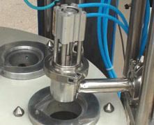 ○ 該灌裝(zhuāng)生產線具(jù)有(yǒu)六個同步注脂灌裝(zhuāng)頭,油脂可均勻地被擠壓灌裝(zhuāng)到容器裏。