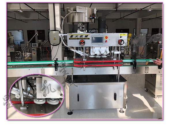 2、該自動上蓋(gài)真空旋蓋機適用於多種圓形瓶子旋蓋,兼容性很強,采(cǎi)用不鏽鋼設計(jì),各部件調節都很方便。